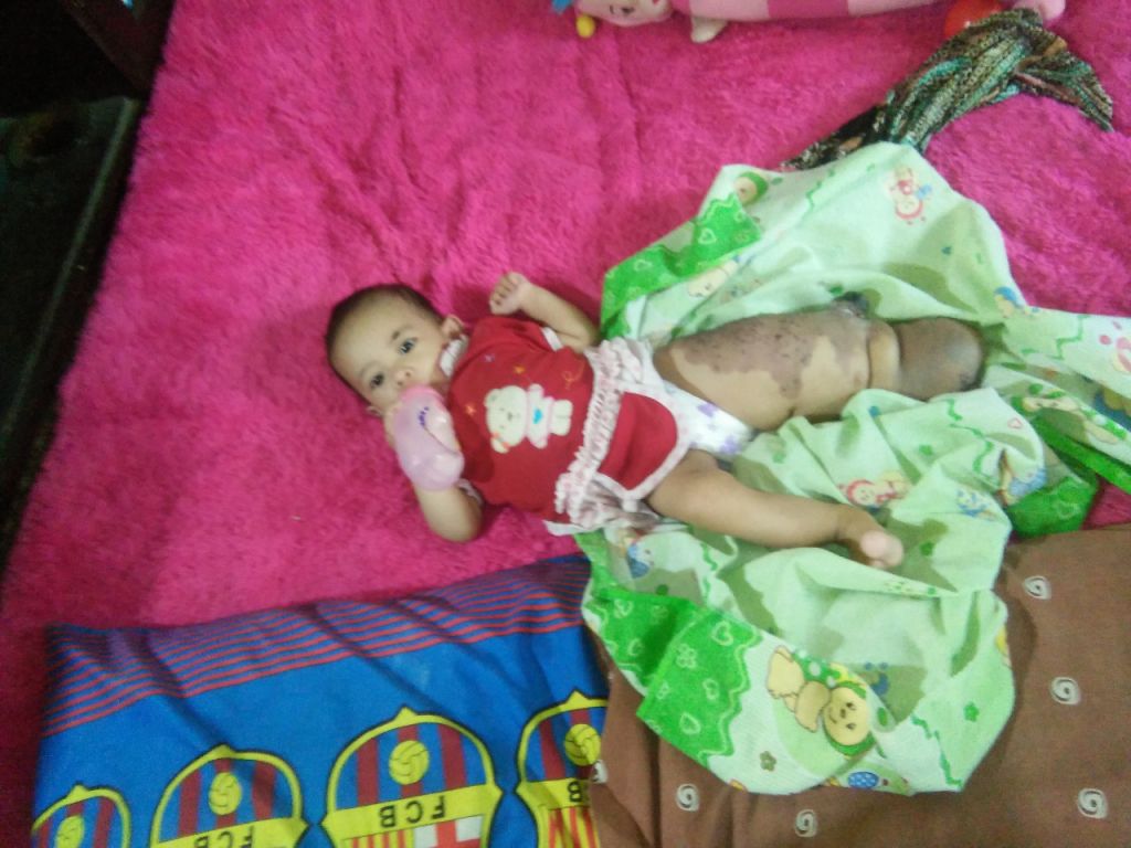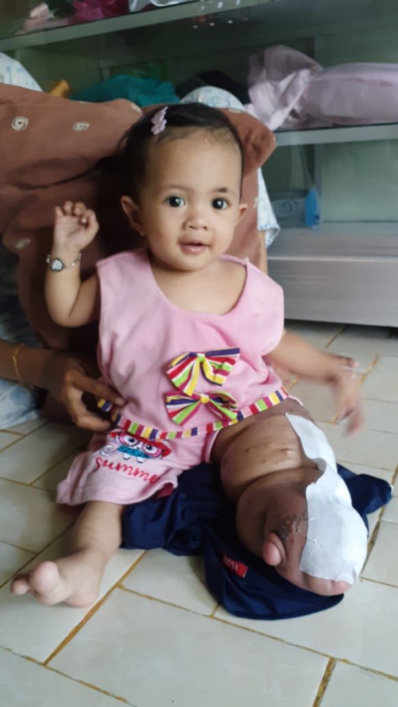 Perkenalkan, adik kecil ini bernama Nanda. Seperti yang kamu lihat, kakinya tidak normal seperti anak lainnya. Nanda mengidap Linfangioma; malformasi sistem limfatik yang ditandai dengan lesi atau kista dinding tipis.