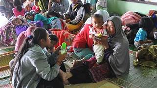 Di tempat-tempat pengungsian, sebagian besar keluarga datang hanya dengan pakaian yang mereka kenakan. Anak-anak menggigil kedinginan, para lansia tampak sangat letih, dan para ibu kesulitan merawat bayi karena tidak tersedia air bersih maupun kebutuhan dasar lainnya. Banyak pengungsi bahkan mengaku belum mendapatkan makanan yang layak meski sudah berhari-hari berada di pengungsian.