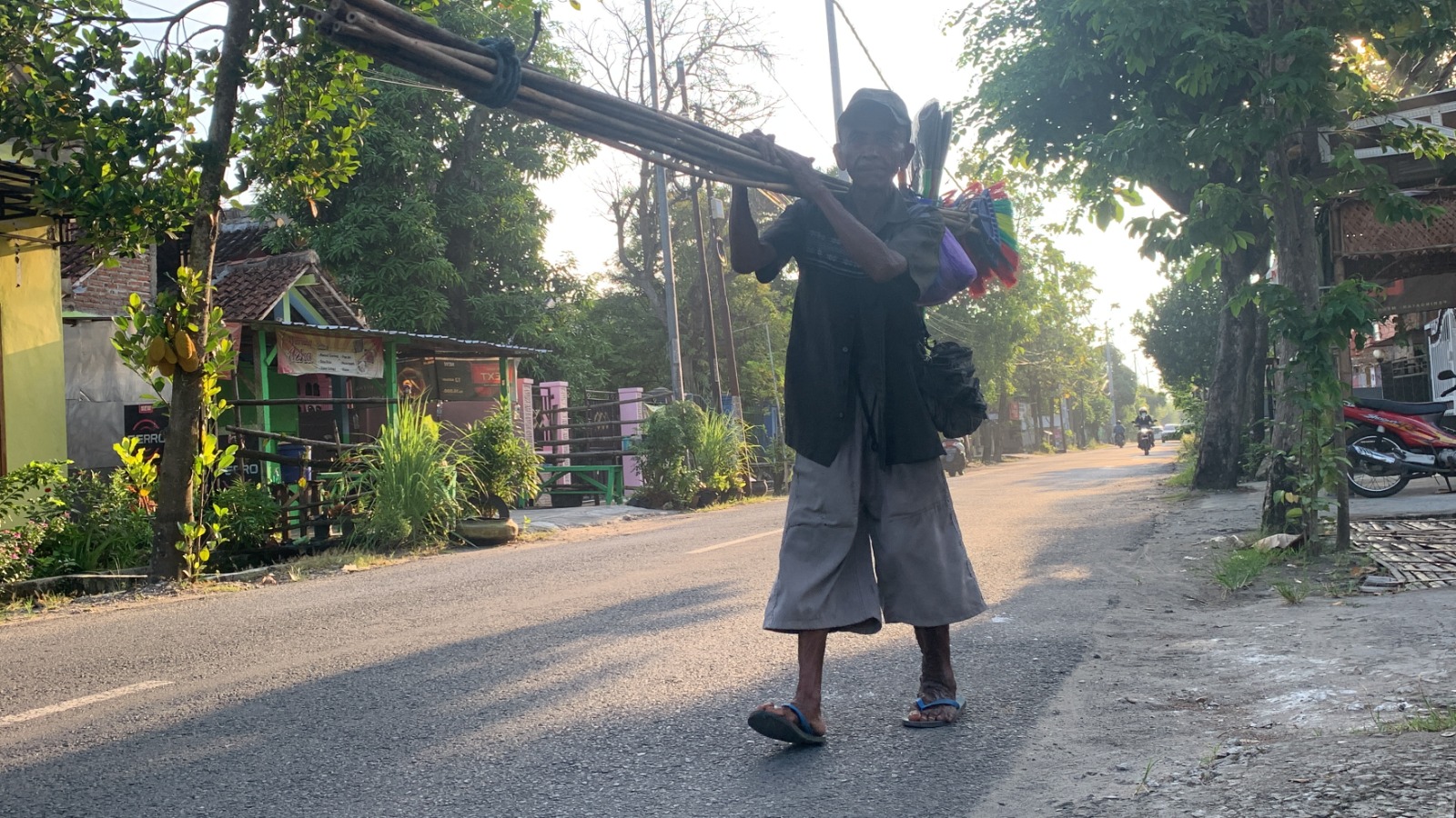“Kalau sudah terlalu jauh berjalan sampai lupa pulang mas, jadi ya pulang sampai malam pernah juga tidak pulang karena dagangan masih banyak sekali.” Tambah mbah mariyam sambil istirahat di pinggiran jalan.