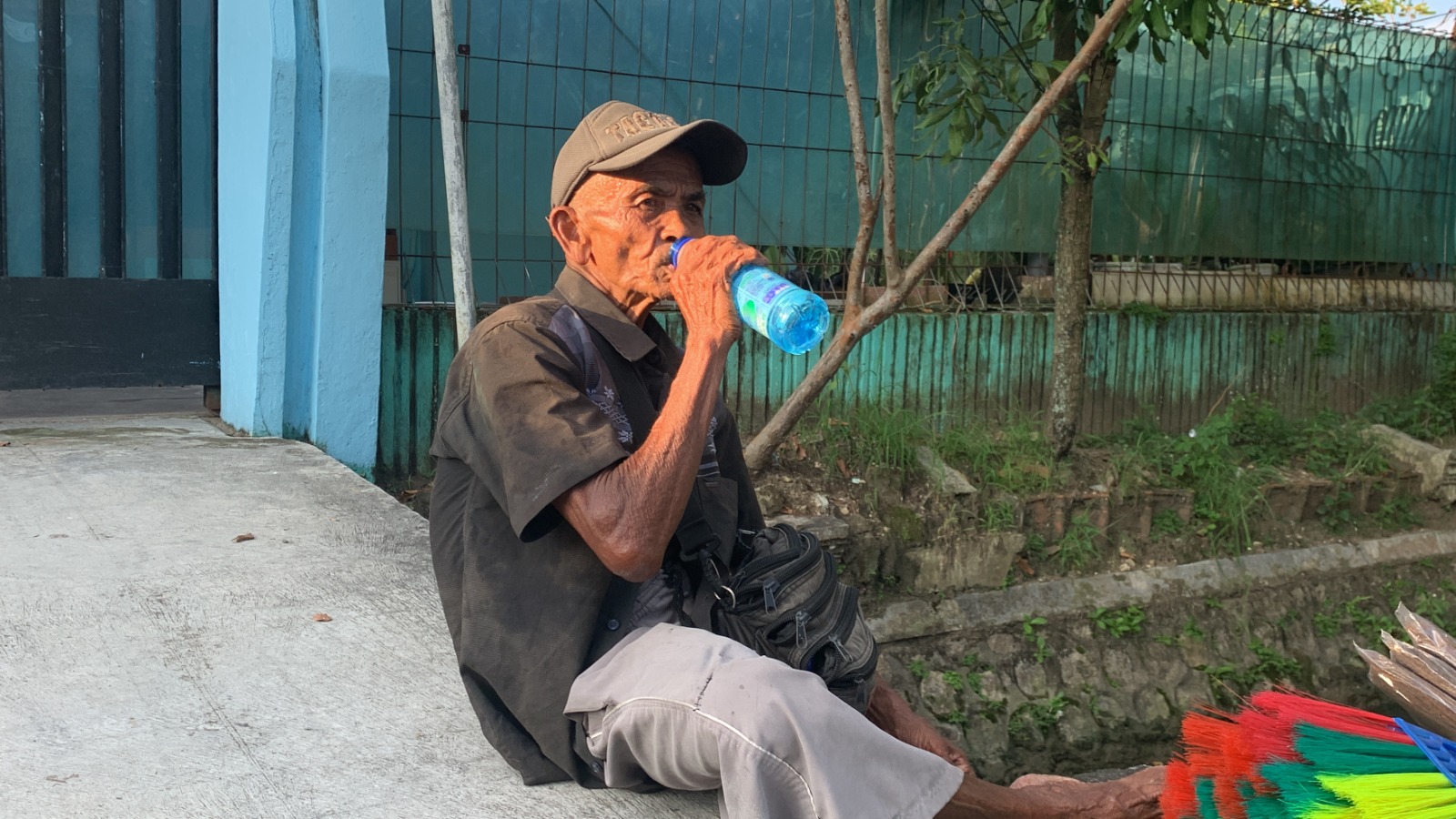 Suaranya terdengar dari jalan, Menawarkan sapu yang beliau bawa sepanjang jalan yang di lalui. Hari itu Mbah Mariyam hanya mendapatkan untung 12 ribu setiap hari dari sapu dan sulak yang telah terjual.