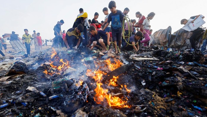 Serangan Israel yang terjadi pada Minggu (26/5/2024) membuat kacau kamp pengungsian di Rafah. Aksi itu membakar tenda-tenda dan tempat penampungan yang reyot.