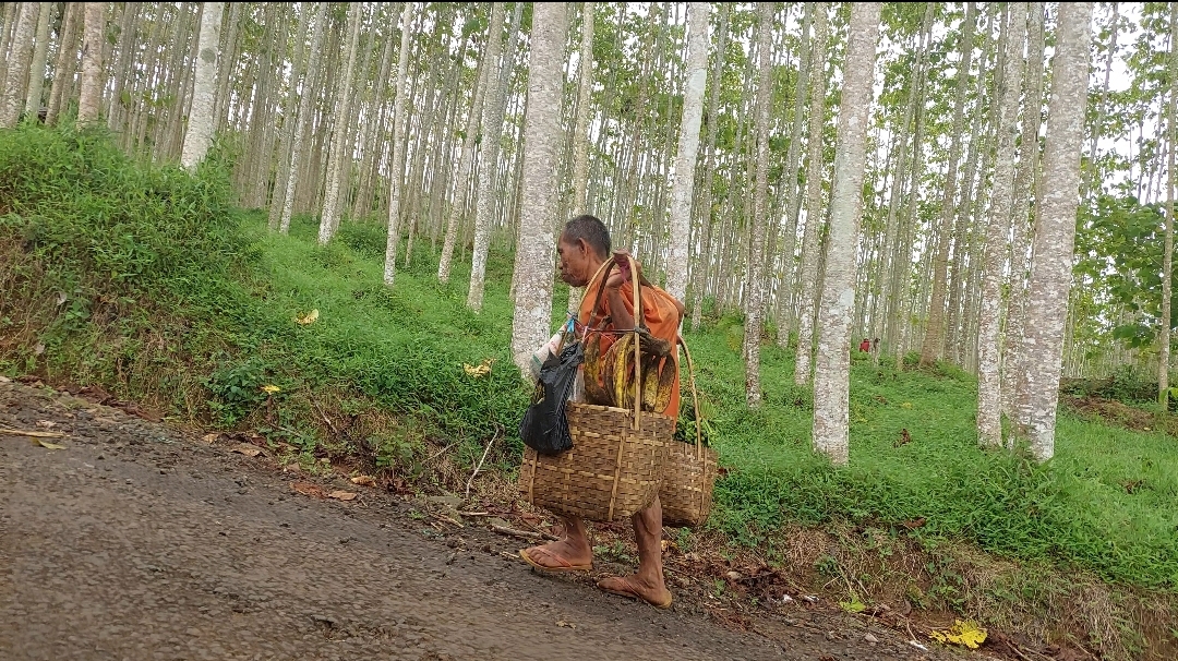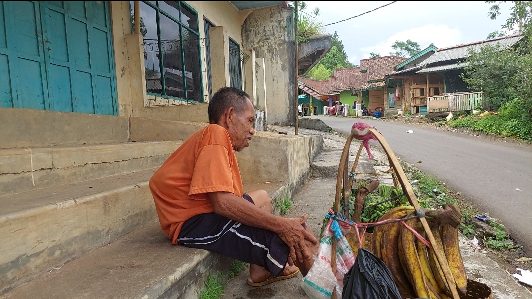 Abah kandi, di usianya yang menginjak 64 tahun terpaksa harus tetap berjualan agar bisa makan walaupun hanya sesuap nasi. Beliau berjualan sayur, dua bakul yang setiap hari dibawanya beratnya 10 kg, belum lagi abah harus melewati hutan dengan jalanan yang menanjak dan menurun.